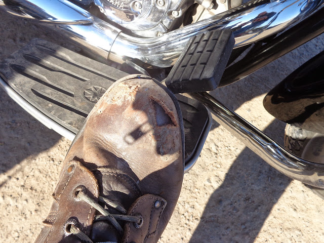 Comencé a los golpes, una caricia de asfalto, cabeza contra el suelo (Gracias casco), calzado destrozado (Gracias botín con punta de acero), huesos golpeados muy duramente pero esta vez no quebrados. Un segundo de mezcla de autopista en reparación mas un toque de gasoil mas mucha agua regada por los obreros mas una Chancha que tengo que aprender a dejar que vaya por donde ella quiera y así comenzó mi salida con mi hijo de copiloto que resultó ileso.